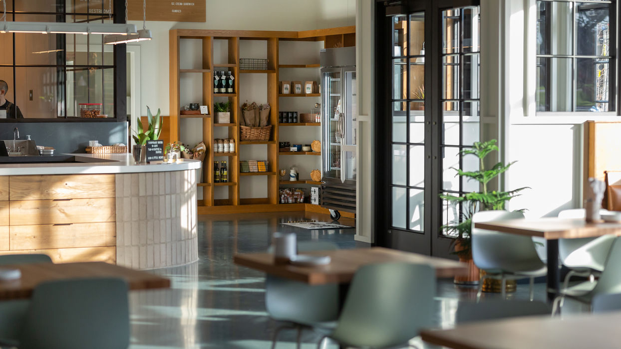 Locus Architecture reconfigured the open retail shell into a highly functional restaurant layout, organizing a large commercial kitchen at the rear, a central bar and service area, and two dining rooms at the front. New windows and skylights flood the interior with natural light, creating a warm and inviting atmosphere throughout the day. The former outdoor retail zone has been transformed into a flexible dining patio, equipped with skylights and radiant heaters that extend seasonal use well beyond summer months.